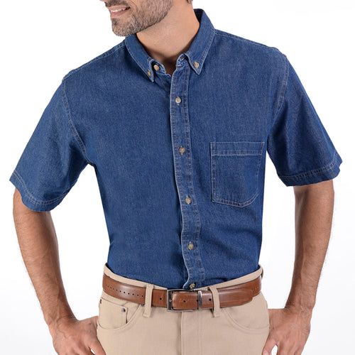 Camisa Mezclilla Yale Manga Corta con Botton Down Regular Fit Stone bleach 3516
