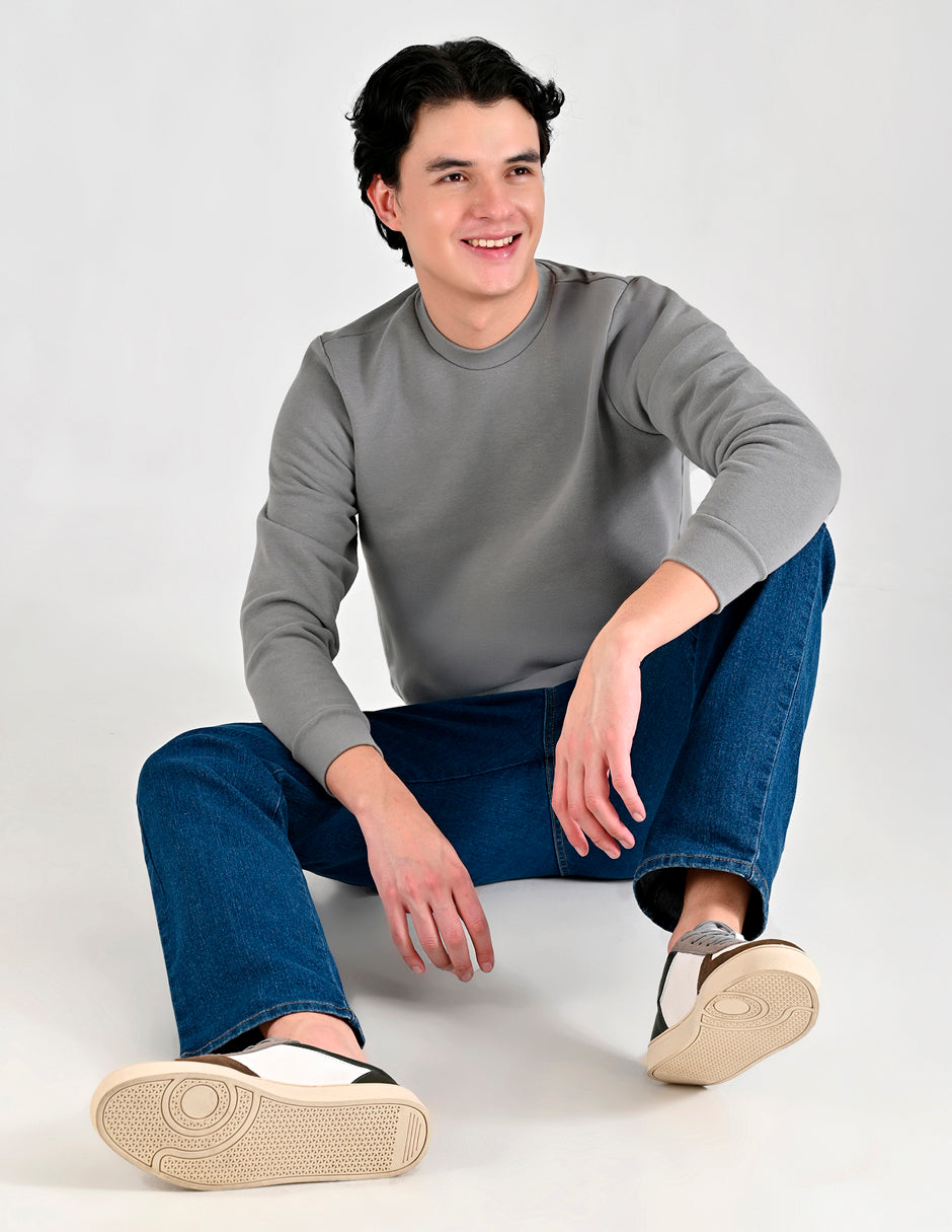 Esta sudadera de cuello redondo es la pieza clave para un estilo casual pulcro, fusionando la suavidad de la tela con una silueta moderna. Es la prenda ideal para el hombre que busca una comodidad relajada sin sacrificar la pulcritud de su imagen. Elegancia Minimalista y Versátil Confeccionada con una suave tela de sudadera, esta prenda ofrece una calidez acogedora y un tacto increíblemente agradable. Su construcción robusta le da un toque de elegancia sobria, fácil de integrar en cualquier outfit. Un Diseño que Resalta los Esenciales El diseño se distingue por su enfoque minimalista y sus acabados de alta calidad, que garantizan un estilo atemporal: Cuello Redondo Clásico: Proporciona un ajuste cómodo y limpio, ideal para llevar solo o para superponer con una camiseta interior. La vista de detalle confirma el acabado robusto del cuello. Corte Moderno: El corte Regular Fit junto con los ribetes elásticos en puños y cintura le otorgan una silueta estructurada que mantiene la forma, a la vez que permite total libertad de movimiento. Comodidad Sin Esfuerzo: El modelo la lleva combinada con jeans negros y zapatillas deportivas, ilustrando la versatilidad de la sudadera para un look diario, casual y con estilo. Una Inversión en Comodidad Inteligente Esta sudadera es una pieza fundamental de fondo de armario, práctica para cualquier actividad y temporada. Invierte en esta prenda que equilibra a la perfección la comodidad con un diseño sofisticado.