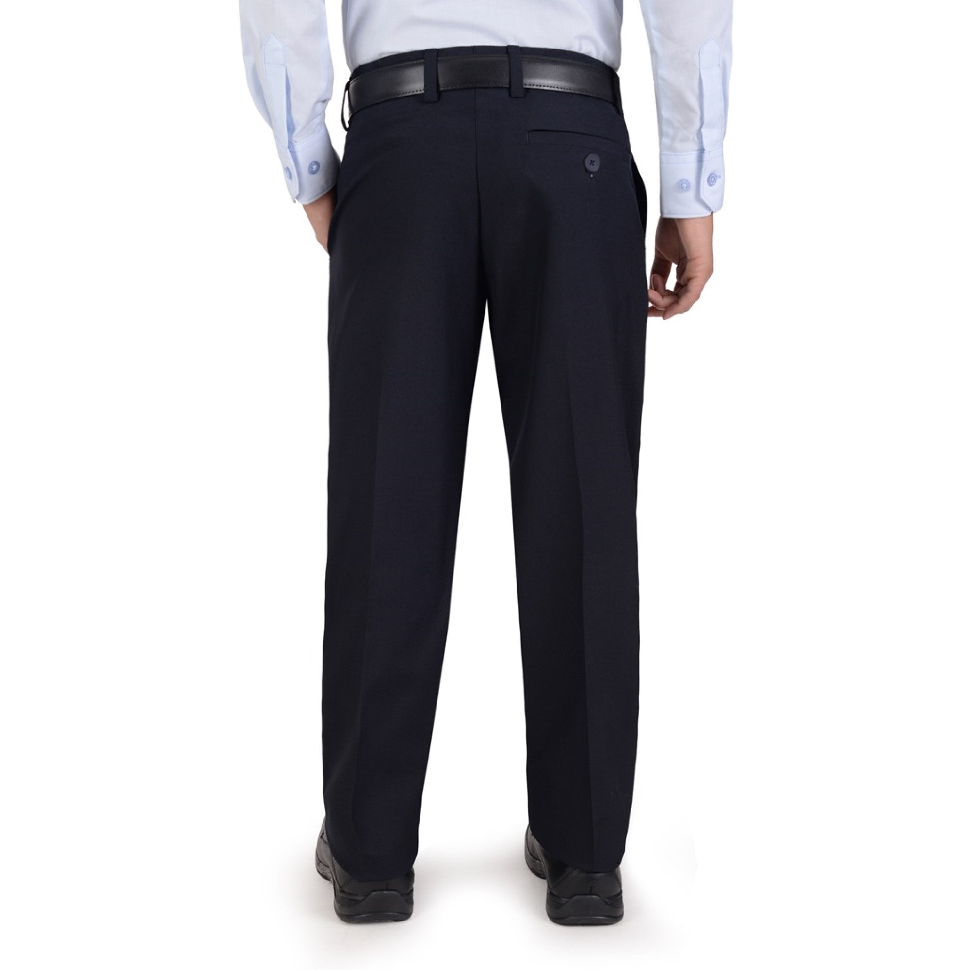 El Pantalón de Vestir Yale Boys Sin Pinzas está confeccionado con una mezcla de 68% poliéster y 32% viscosa, ofreciendo textura suave, resistencia y una caída elegante.