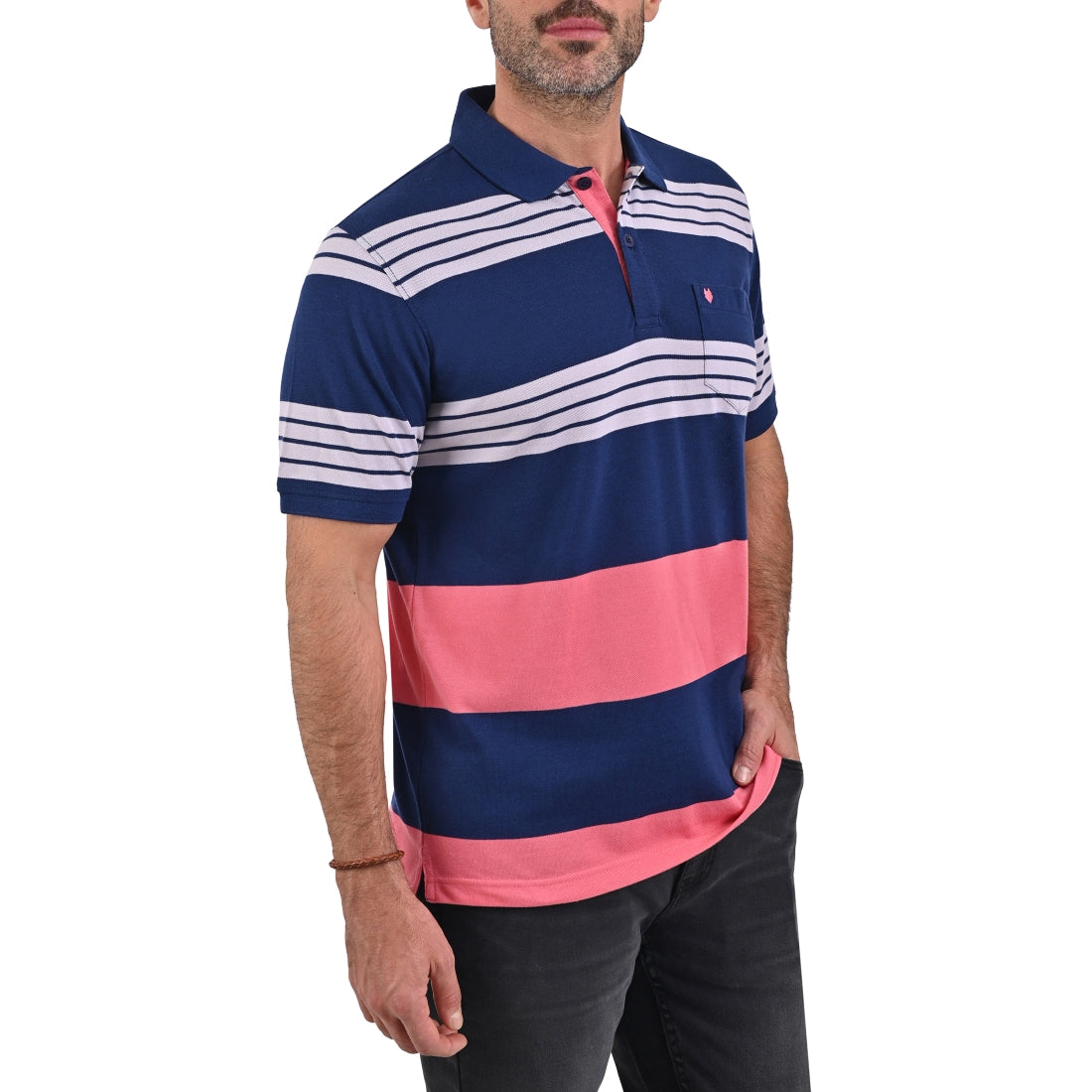 Playera Yale Tipo Polo Manga Corta Slim Fit Franjas Rosas 7275